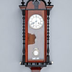 動力はゼンマイ式で、時打ち、半打ちを備えています。時打ちは分針の位置が12で短針の指し示す数のゴングを鳴らし、半打ちは分針が6の位置になると1回だけゴングを鳴らします。