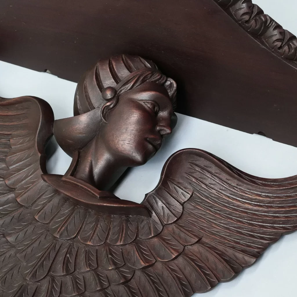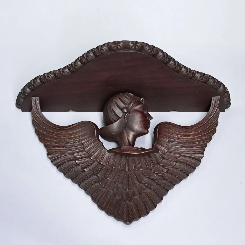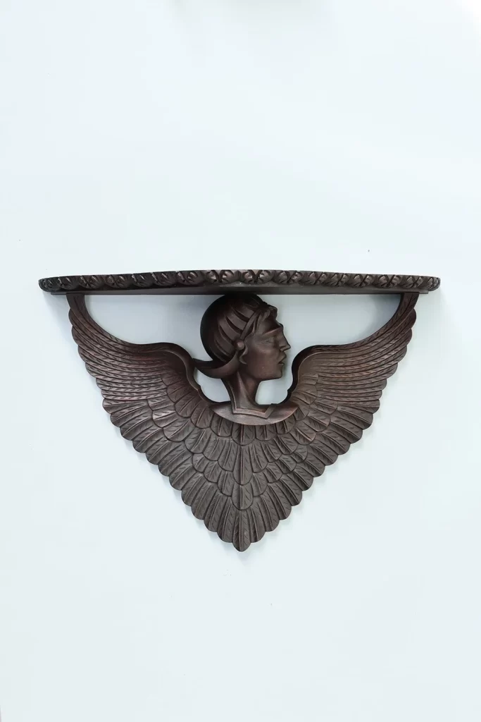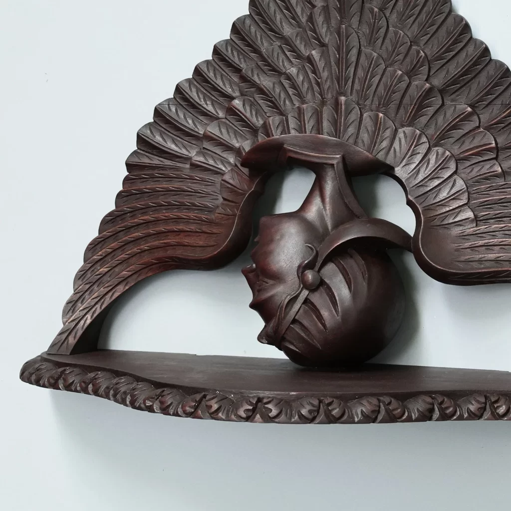 ローズウッド木彫りのシェルフ。モチーフが北欧神話のワルキューレっていうところが、レアすぎて鳥肌が立って一目惚れで仕入れました。木匠が素晴らく惚れ惚れします🥰