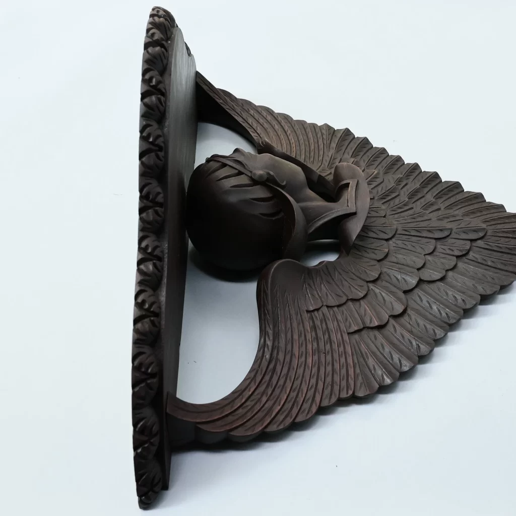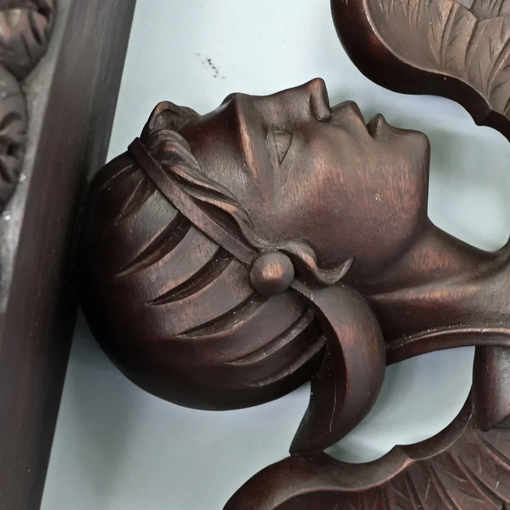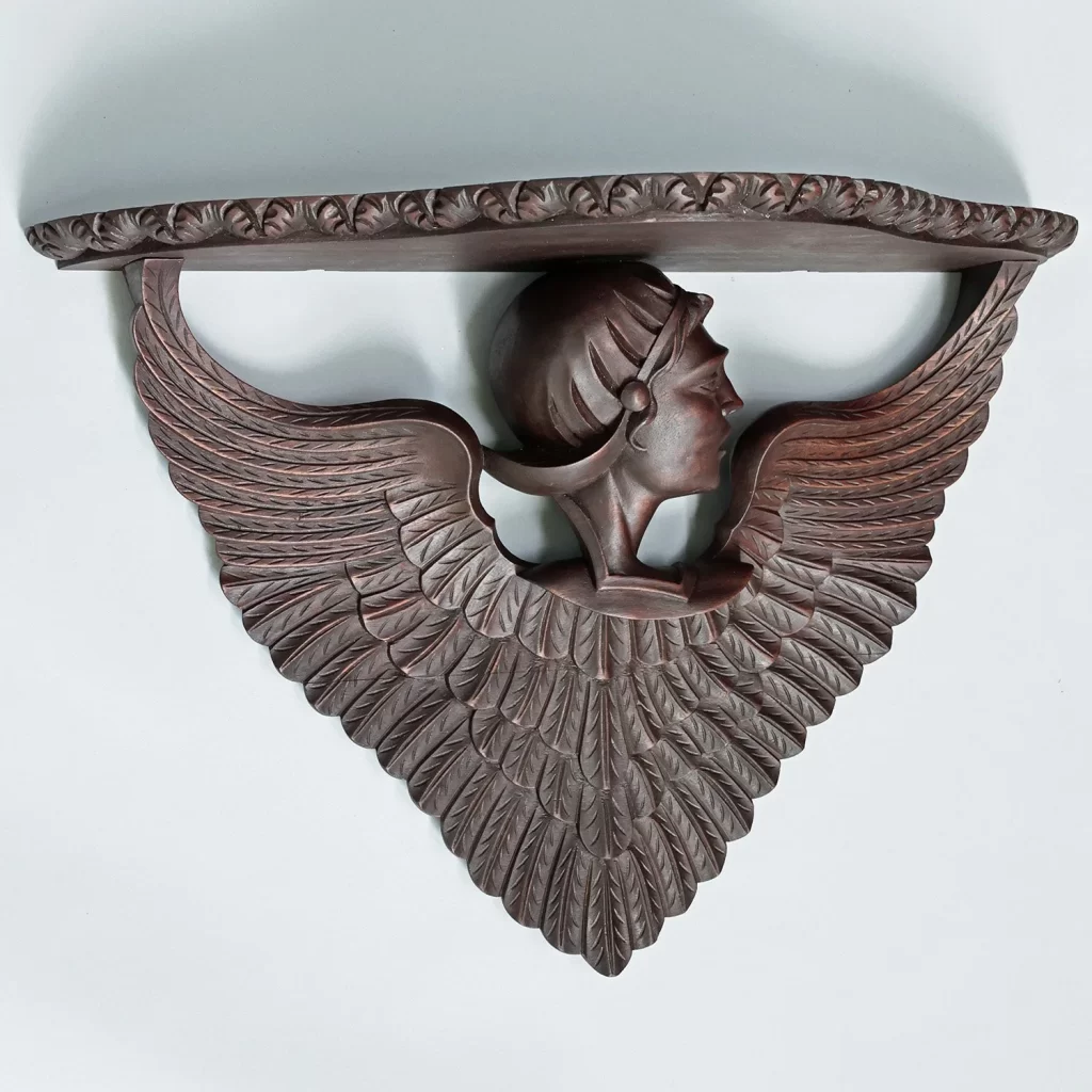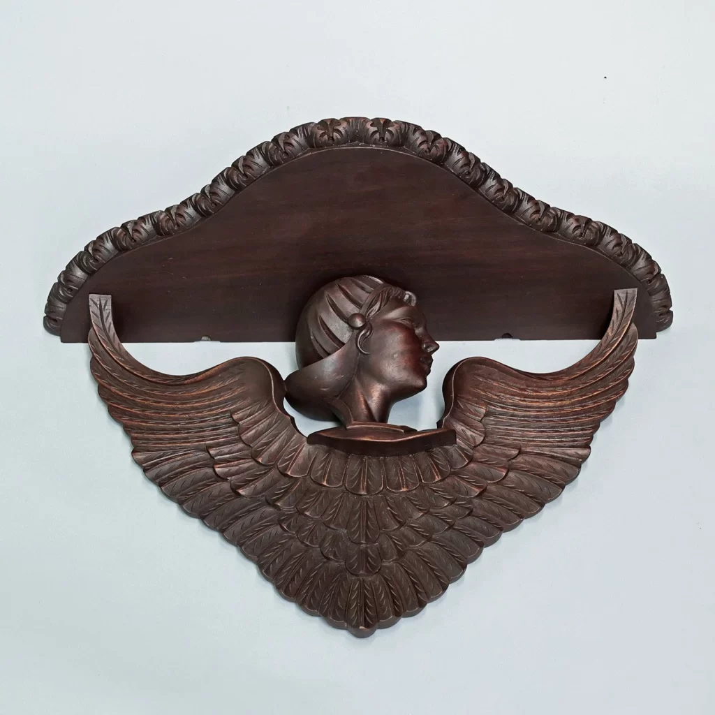 ローズウッド木彫りのシェルフ。モチーフが北欧神話のワルキューレっていうところが、レアすぎて鳥肌が立って一目惚れで仕入れました。木匠が素晴らく惚れ惚れします🥰