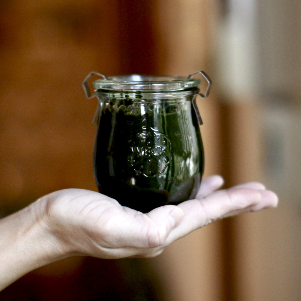 庭採れバジルでソース作り