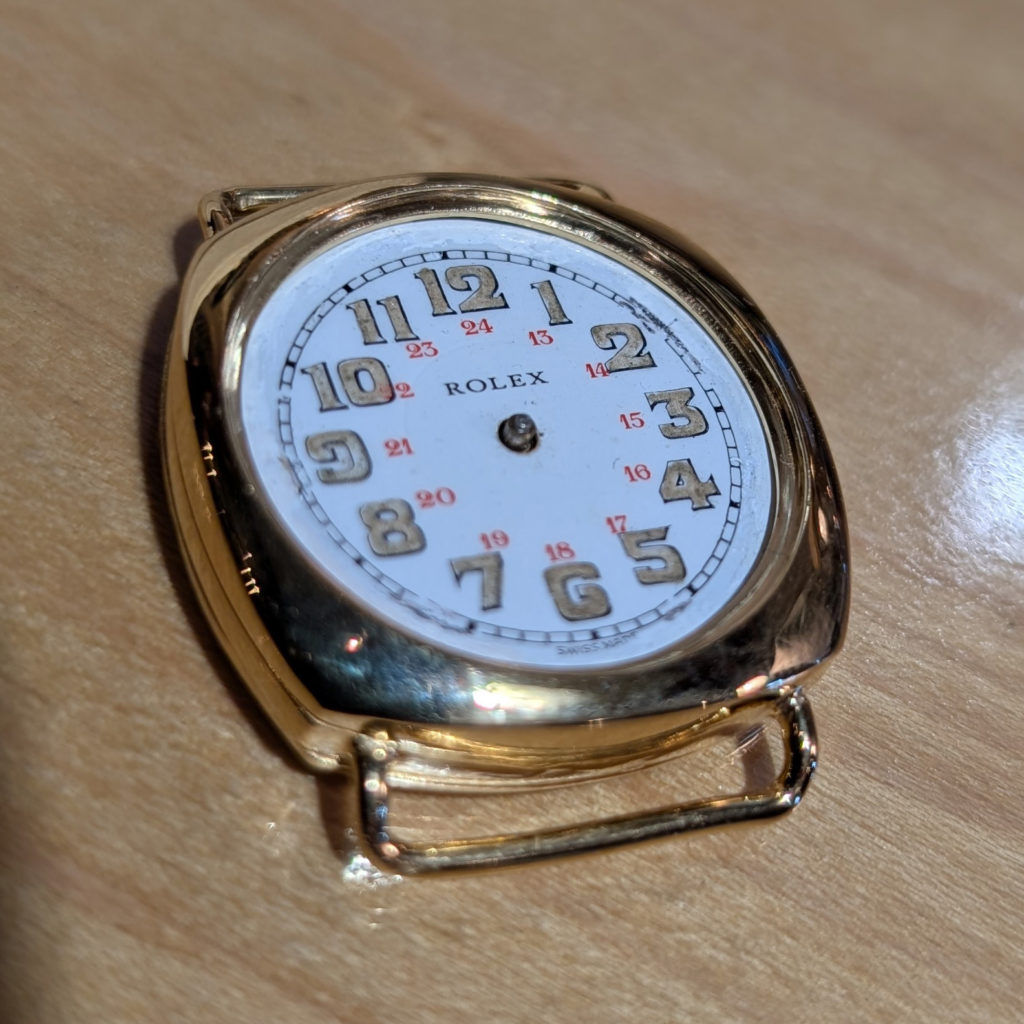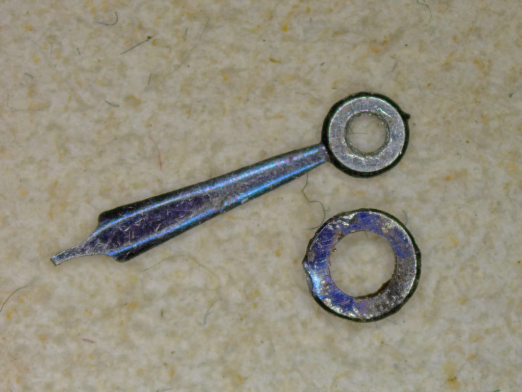 S様 時計ベゼル クッションケース上蓋の作成 2 2025年10月12日 日々のこと 純銀で新規作成したベゼル上蓋ケースを18K鍍金仕上げにして、色合わせエイジング合わせも兼ねてケースと裏蓋も18K鍍金仕上げにしました。 次は針折れ交換とプレシキガラス風防合わせ。どうなるか僕も楽しみ。 長針が根元から折れて紛失 ブルースチール素材 軸が合うアンティーク針で探します