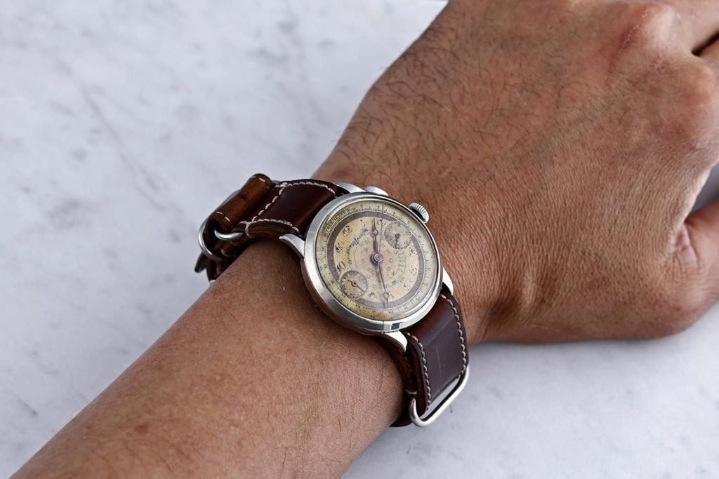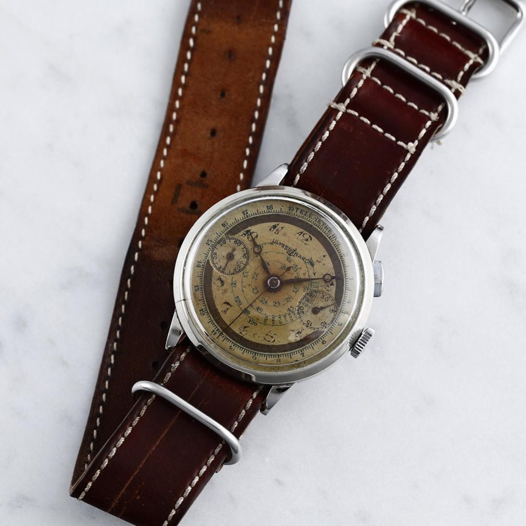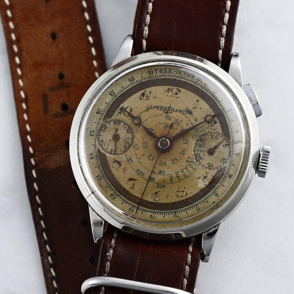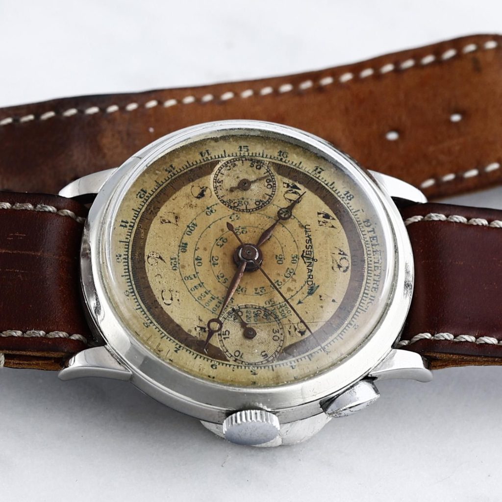 1940s Ulysse Nardin Chronograph, Military One Pusher Landeron Hahn Cal.15